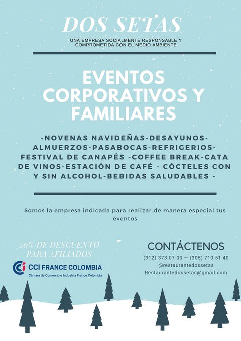 Notre affilié DOS SETAS offre une réduction de 20% à tous les membres de la CCIFC pour leurs événements corporatifs et familiaux. Plus d'informations: restaurantedossetas@gmail.com