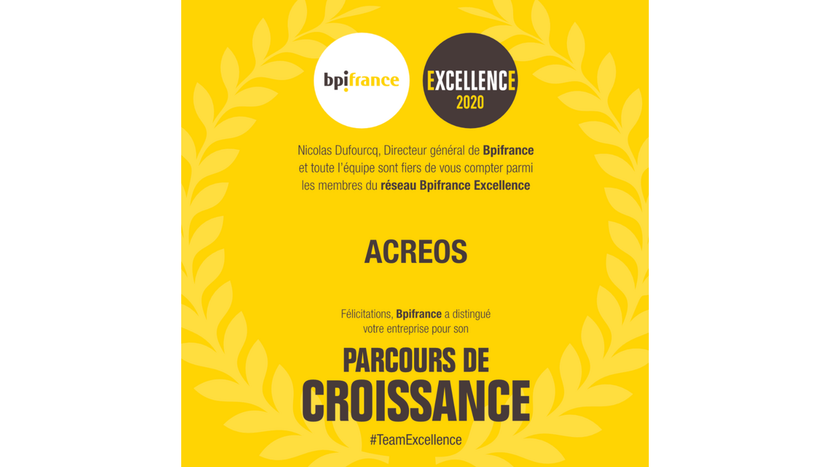 Pour la 5ème année consécutive, Bpifrance, la banque des entrepreneurs, a reconnu le parcours de croissance de la societé ACREOS avec le label BPI Excellence.