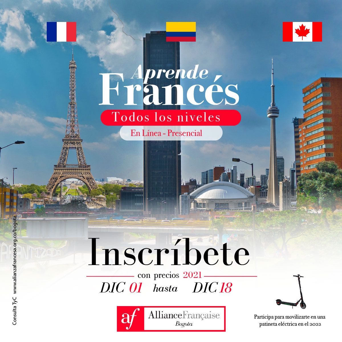 Avec votre inscription à partir de 2022, vous participerez pour un skateboard électrique. L'Alliance Française de Bogota promeut les moyens de transport respectueux de l'environnement ♻