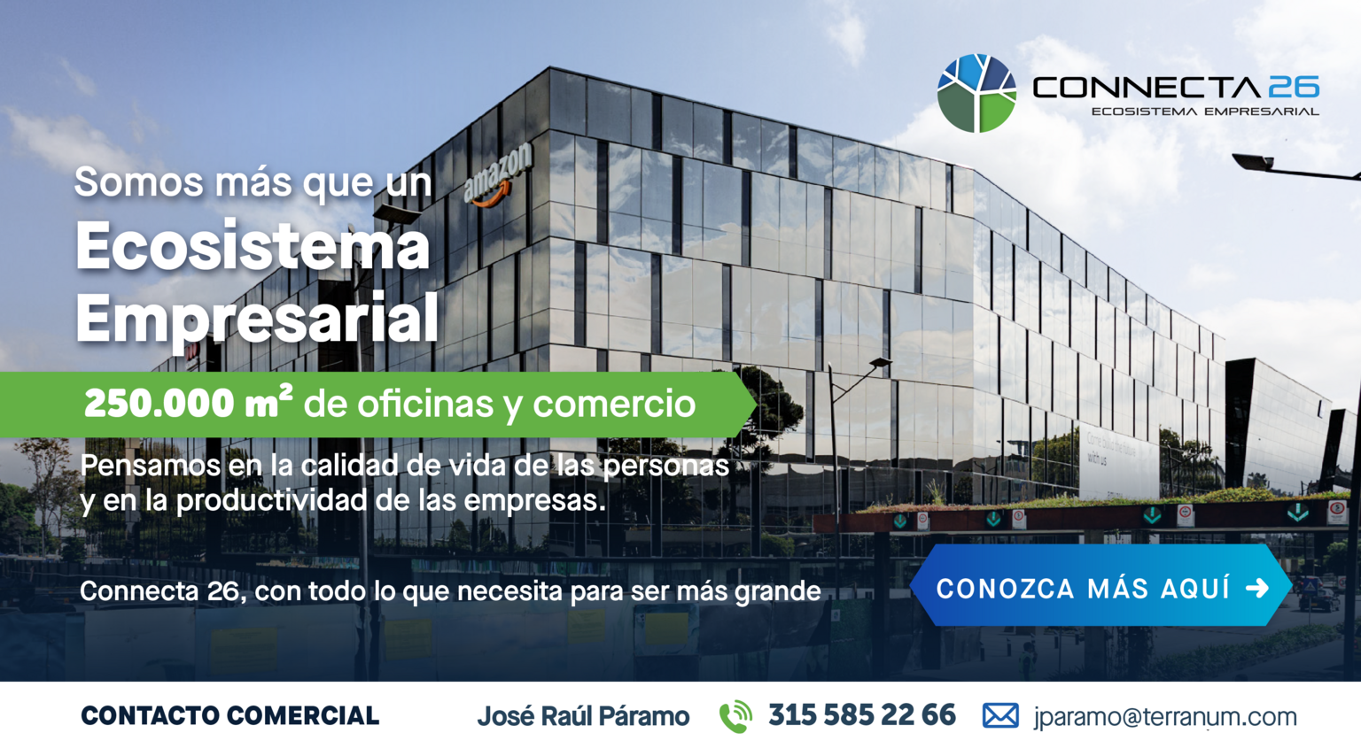 Connecta 26, est le seul campus en Colombie avec un centre commercial en plein air, un hôtel international, un centre de congrès, une salle de sport, un parc central, des espaces verts et une gamme de commerces dernière génération et de services complémentaires.