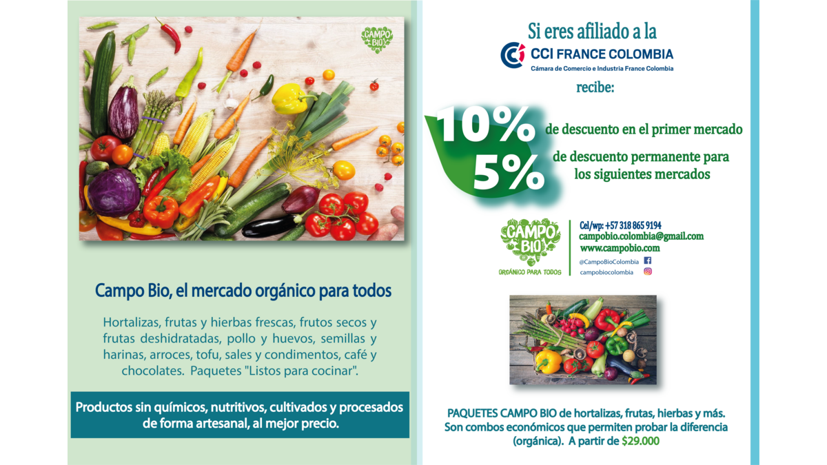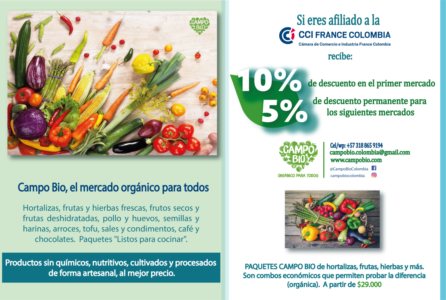 Campo Bio, produits biologiques avec réduction pour les membres de la CCI France Colombia
