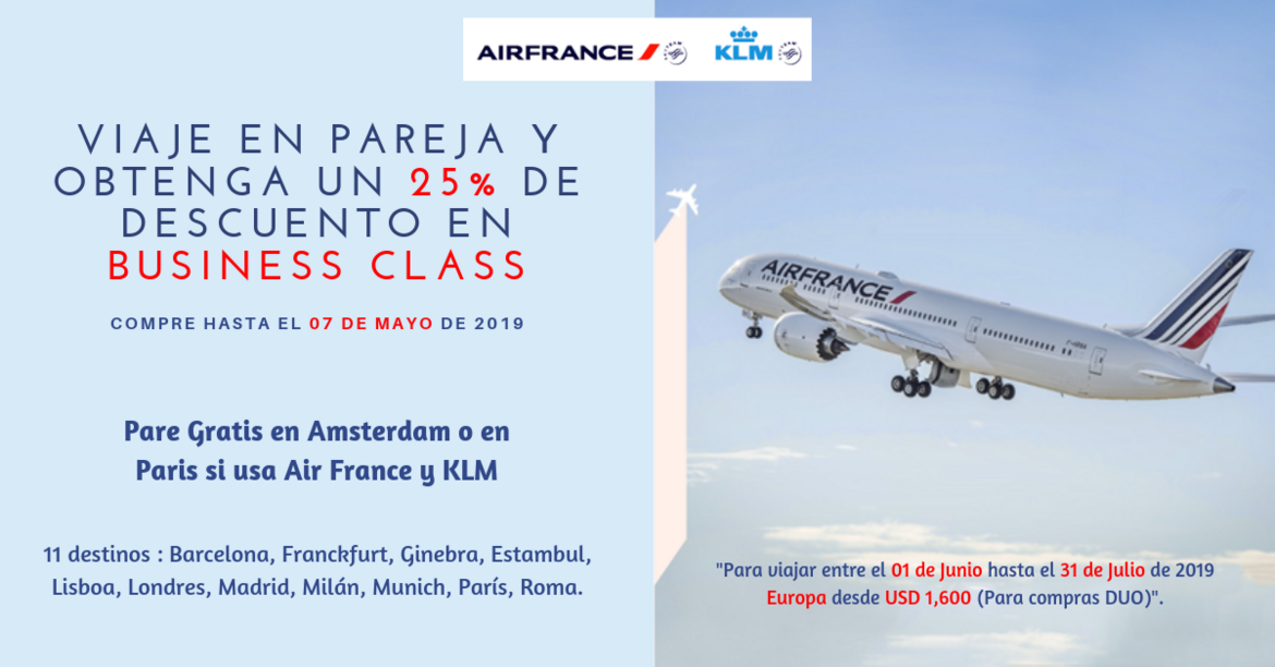 Voyagez à deux et obtenez 25% de réduction sur vos billets en business class