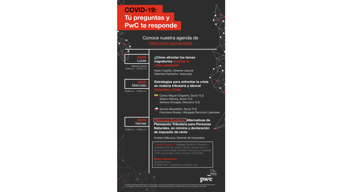 Webinar • COVID-19 Cette semaine ne manquez pas les webinaires de PwC Le 04/05/2020 Lien pour s'inscrire