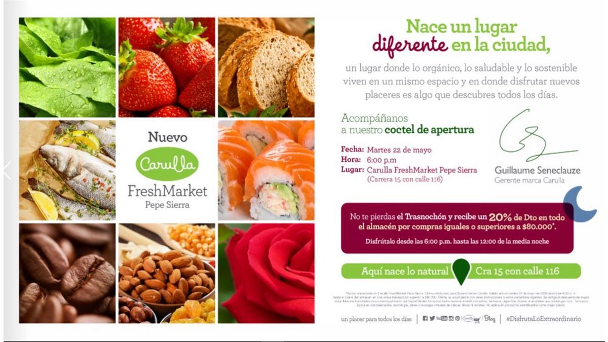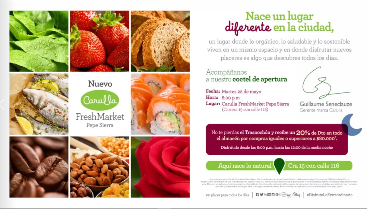 Cóctel de apertura del Nuevo Carulla FreshMarket el 22 de mayo