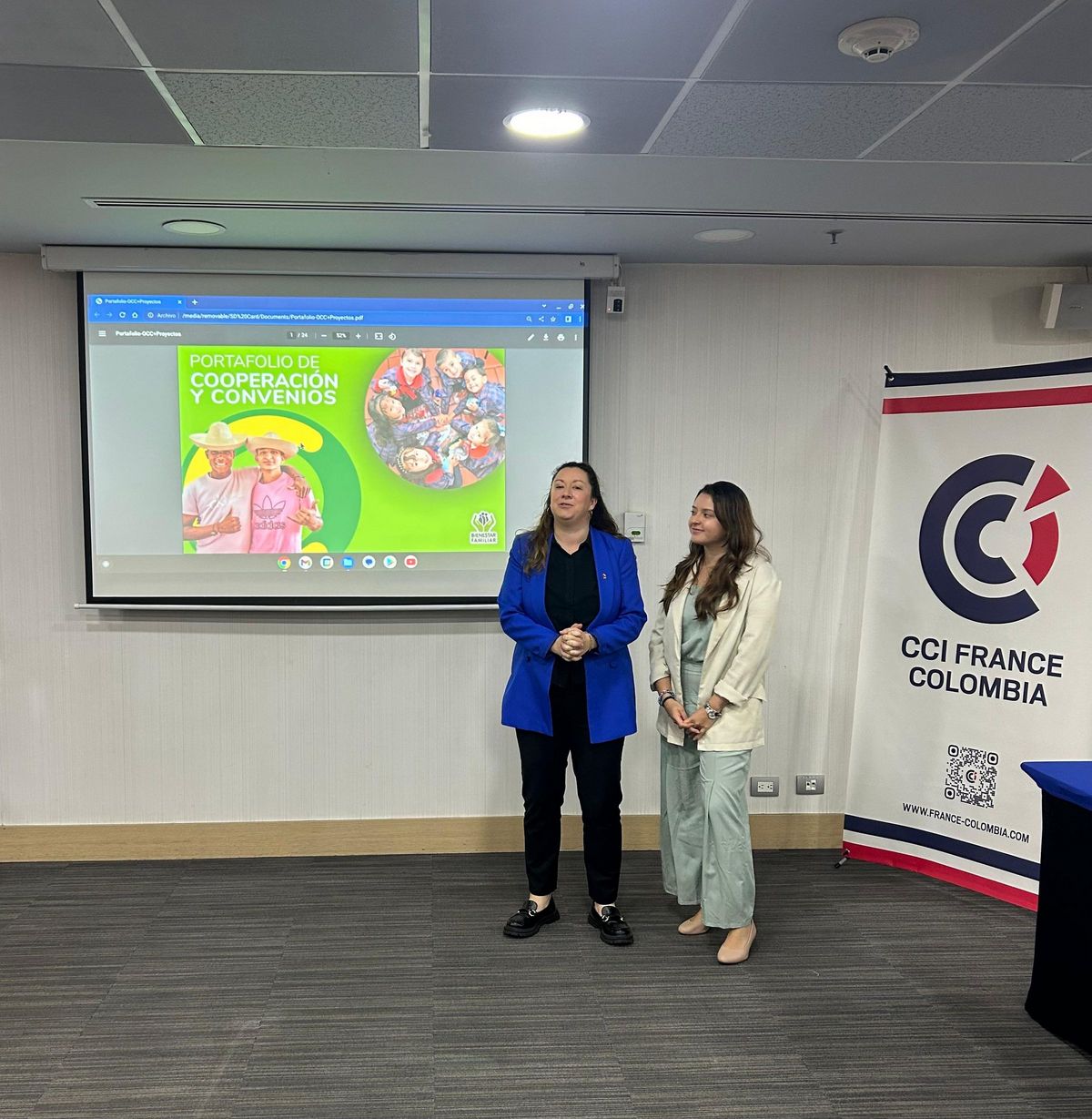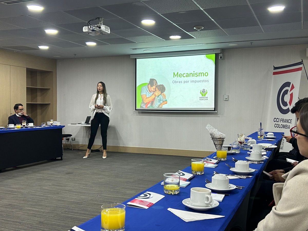 Alejandro Angarita Bejarano, Javier Parra et Karen Daniela Díaz ont présenté le travail de l’ICBF, leurs programmes et comment les entreprises peuvent contribuer via le mécanisme d’Obras por Impuestos (financement déduit d'impôts). Grâce au soutien de tous, l’ICBF peut développer des projets sociaux qui aident des milliers d’enfants, de jeunes et de familles.