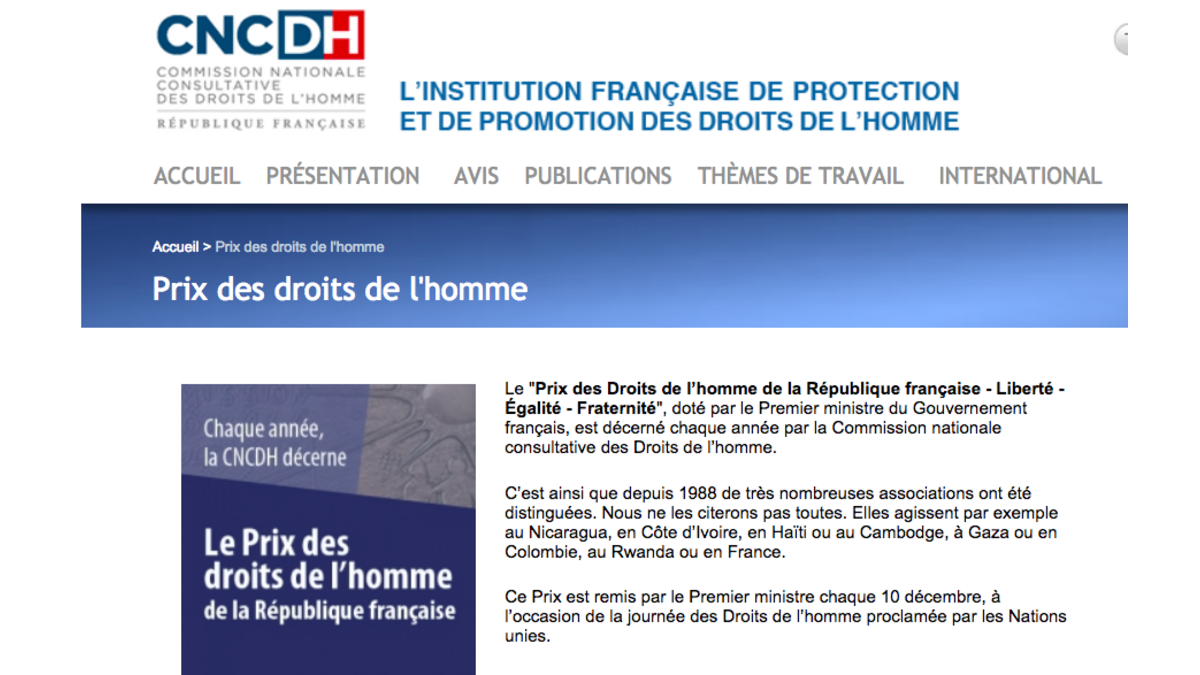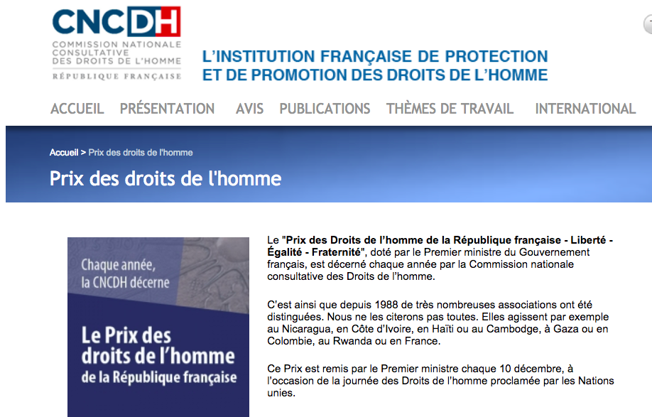CONVOCATORIA - PREMIO DE DERECHOS HUMANOS DE LA REPÚBLICA FRANCESA 2018