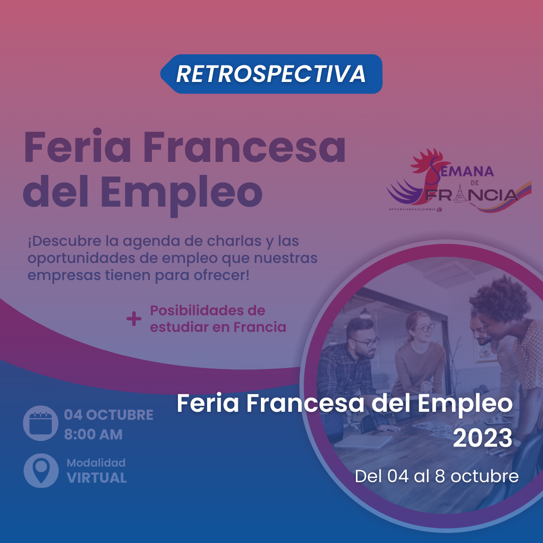 Nous remercions tous les participants, les entreprises collaboratrices, AIMS International, L’OCCITANE Group, ALD Automotive, Alianza Francesa de Bogotá, Biotope Colombia, BDO en Colombia, Campus France, Capgemini, Espagnol à la Maison, Grupo Éxito, GreenYellow Colombia, L'Oréal, Liceo Francés Internacional de Bogotá, MANE, Mazars, onparle, Soletanche Bachy, Teleperformance, Veolia Colombia, et VIE, pour leur contribution au succès du Salon de l'Emploi Français 2023 !