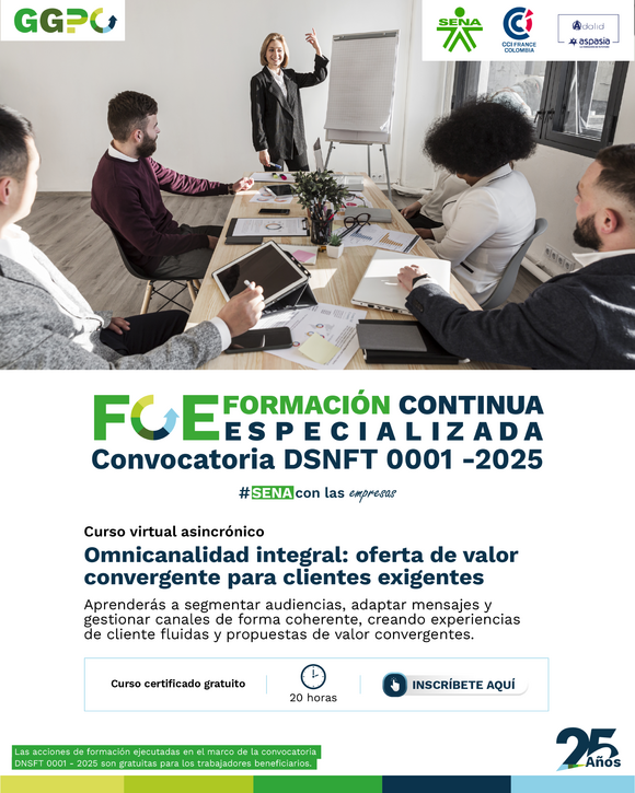 Le SENA, en partenariat avec la Chambre de Commerce et d’Industrie France Colombia, lance le dernier appel à candidatures pour participer à ses formations continues spécialisées. Cette initiative vise à renforcer les compétences des professionnels, des dirigeants et des entreprises face aux défis actuels de l’environnement des affaires.