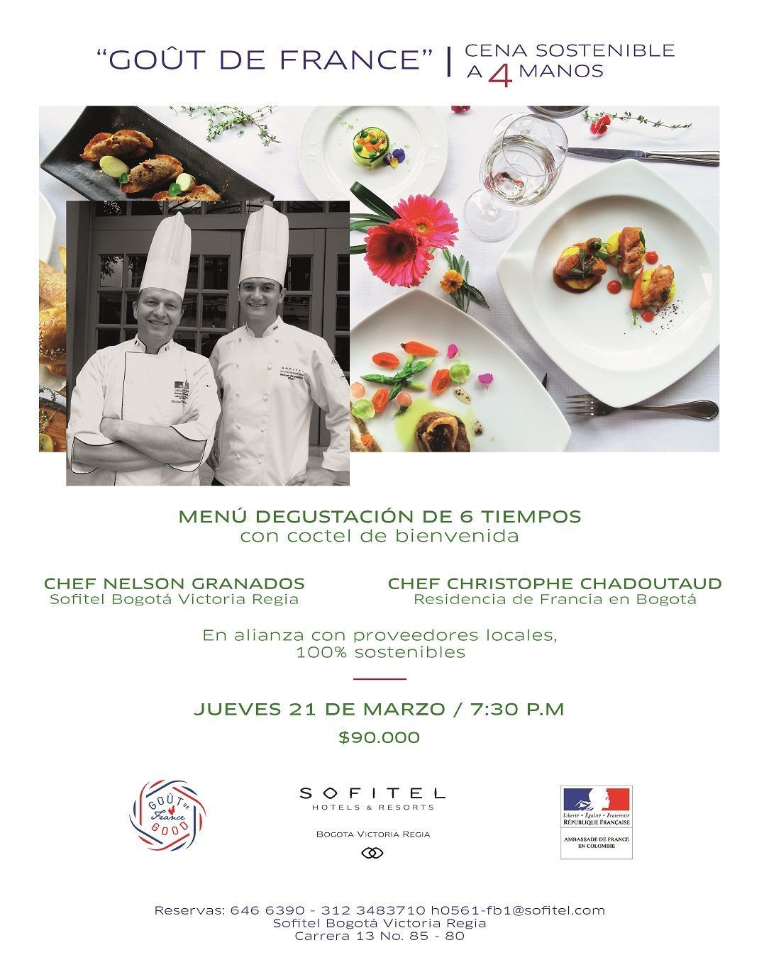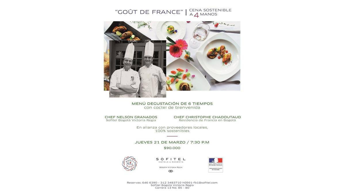Le 21 mars prochain, le Sofitel Bogota Victoria Regia se joindra pour la cinquième année consécutive à l'événement mondial Goût de France, avec un dîner français spécial, déclaré patrimoine immatériel de l'humanité en 2010.
