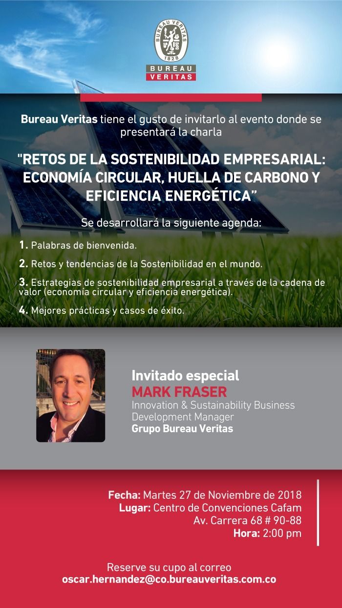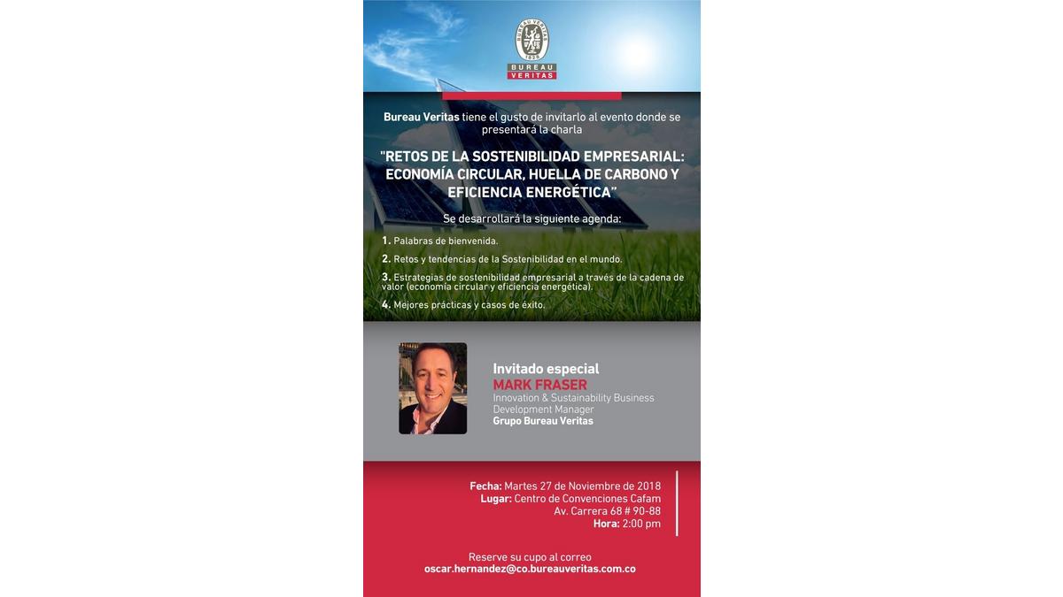 Bureau Veritas a le plaisir de vous inviter au débat "Les défis de la durabilité des entreprises: économie circulaire, empreinte carbone et efficacité énergétique" le mardi 27 novembre 2018.
