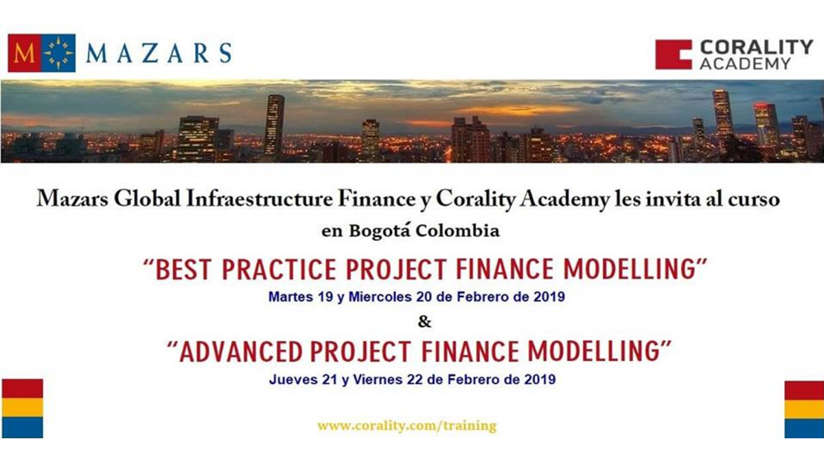 Mazars-Infrastructure & Energy (Corality) avec la participation de Corality Financial Modelling organise les formations suivantes à Bogotá: