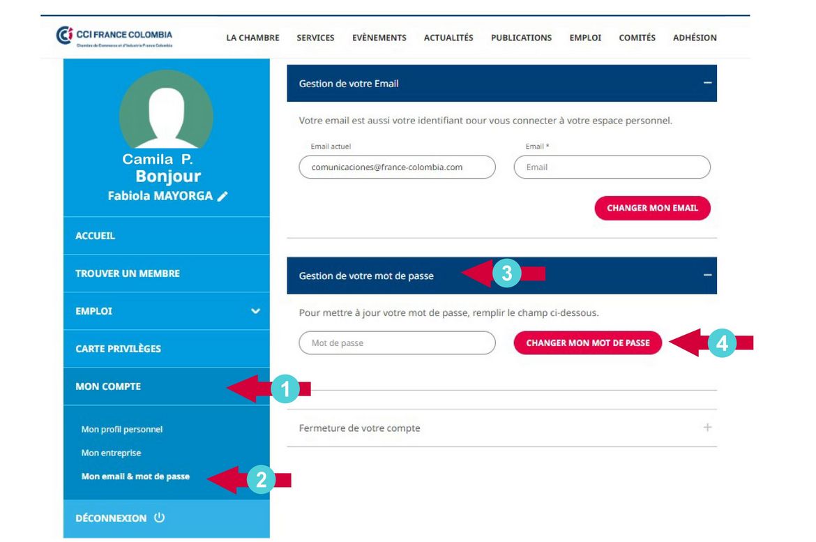 Une fois entré dans votre espace privé, vous pouvez modifier votre mot de passe.