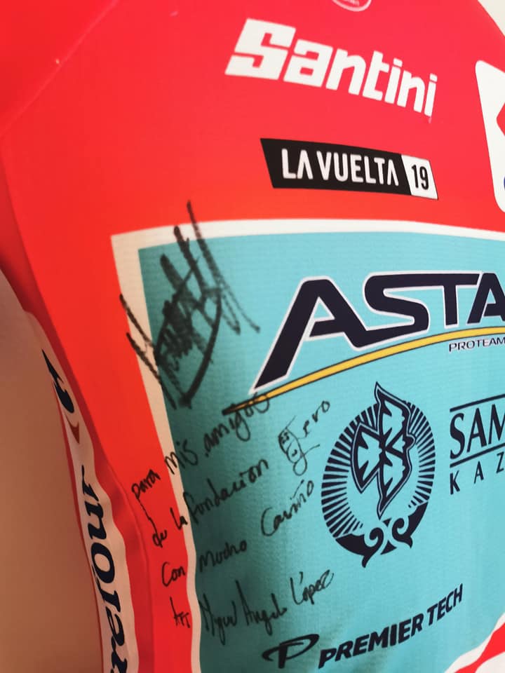 Lors d’une vente aux enchères virtuelle réalisée par le cycliste Miguel Angel Lopez, la Fondation Gero a obtenu le maillot remporté par le cycliste lors du tour Espagne 2019. L’objectif de cette vente aux enchères était de collecter des ressources pour l’achat de produits alimentaires pour les personnes les plus démunies du pays en cette période de crise provoquée par le COVID-19. De plus, le cycliste Miguel Angel a également envoyé à la Fondation un maillot de son équipe actuelle Astana. De même, Eder Garcés a remis à la Fondation un livre de l'édition Tour Colombia 2019. La Fondation Gero espère que les produits alimentaires seront d’un grand bénéfice pour les familles qui en ont besoin et remercie ceux qui soutiennent et achètent dans sa boutique en ligne www.fundaciongero.org.