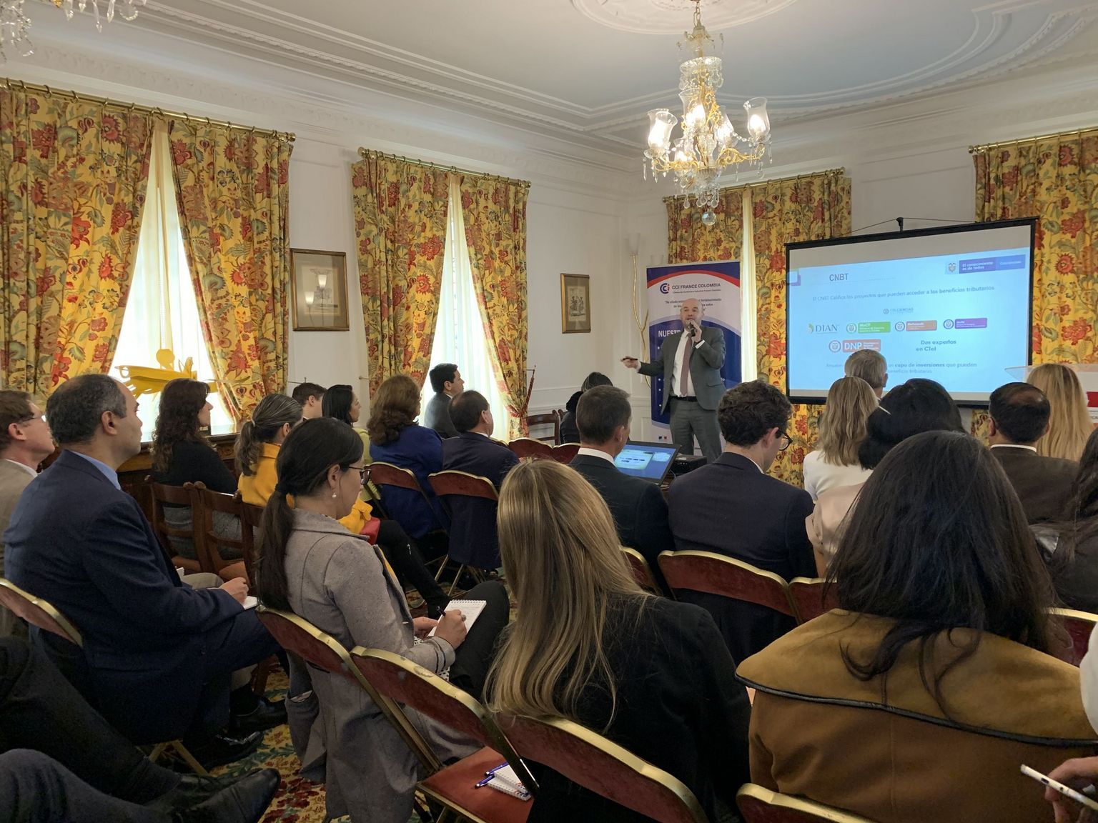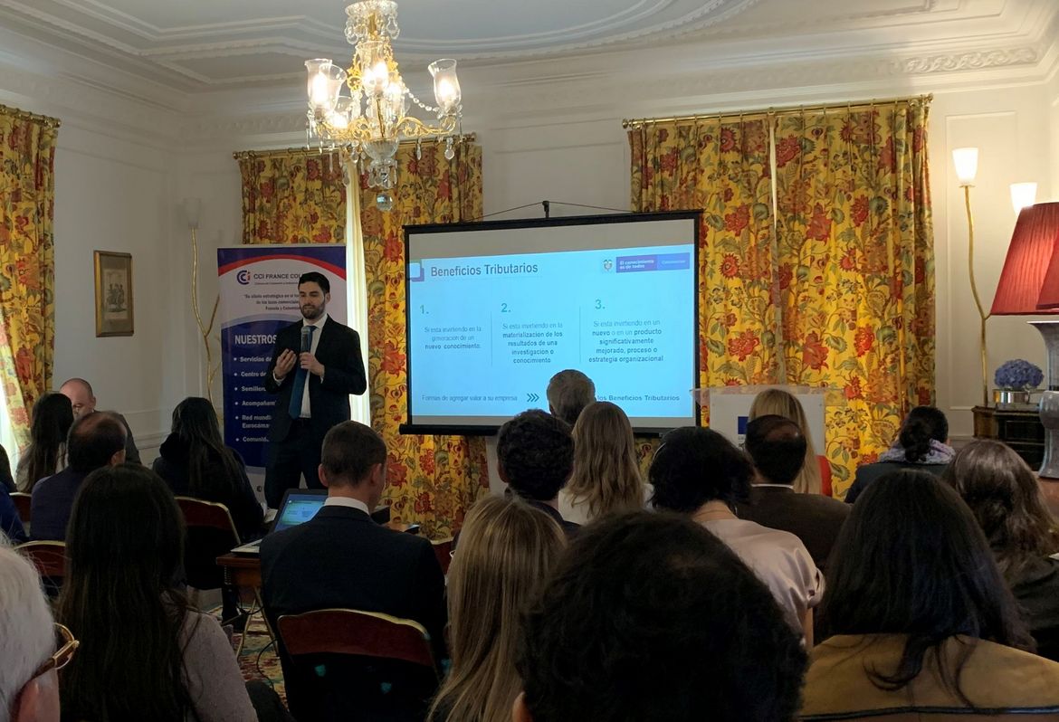 Le mardi 26 novembre nous avons reçu Monsieur Sebastián ESLAVA GARZÓN, Directeur de Développement Technologique et d’Innovation de Colciencias, à la Résidence de France. L’Ambassadeur de France en Colombie Monsieur Gautier MIGNOT a, également, assisté à la conférence.