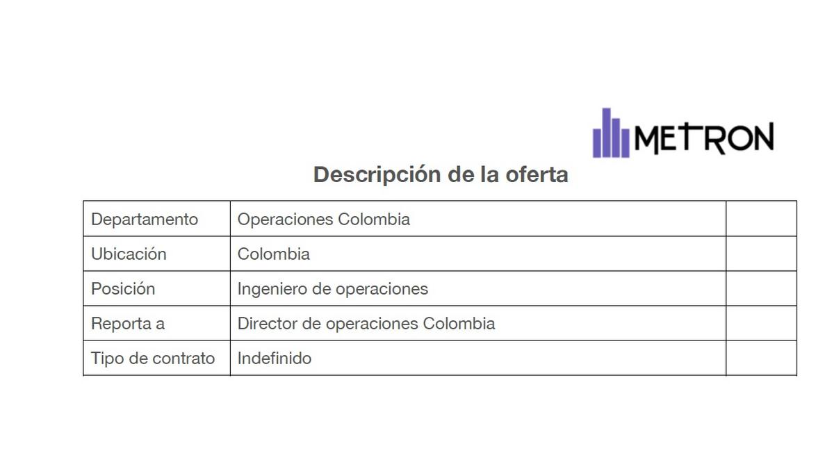 Metron busca Ingeniero de operaciones