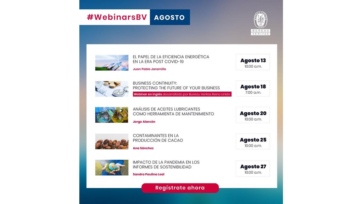 Actualités • Webinar Ne manquez pas les webinaires de Bureau Veritas du mois d'août Le 07/08/2020 Découvrez toute la programmation et inscrivez-vous gratuitement ici