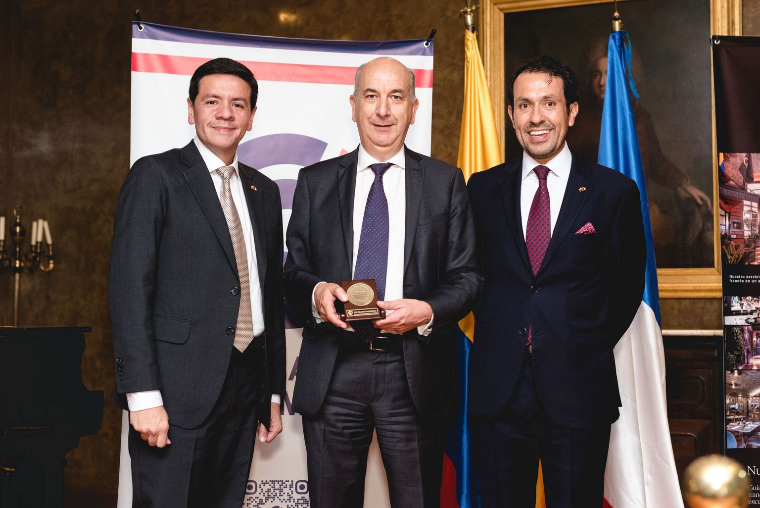 Lors de cette soirée, nous avons rendu hommage à l'Ambassadeur de France en Colombie, Frédéric Doré, pour son travail remarquable dans le renforcement des liens commerciaux et culturels entre nos deux pays. Nous avons également salué le travail de Pierre Sentenac, Chef du Service Economique Regional de Bogota, pour ses efforts dans la promotion de la coopération économique entre les deux nations. Finalement, nous avons célébré la remise de prix du Challenge sportif 2024, la Fondation Gero en est sortie gagnante, recevant une reconnaissance bien méritée pour son engagement en faveur de la responsabilité sociale et de l'excellence sportive.