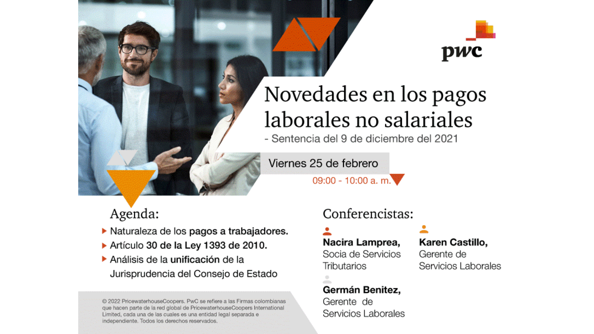 PwC Colombie invite les affiliés de la CCI France Colombia à se connecter à son événement : "Nouveautés dans les paiements des travailleurs non salariaux, arrêt du 9 décembre 2021".