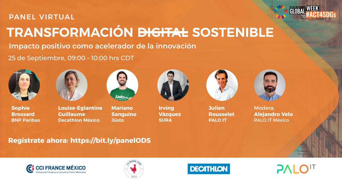 Nous discuterons du pouvoir de la technologie et des modèles perturbateurs pour générer un impact positif au-delà des performances économiques. Nous serons rejoints par des managers de Decathlon México,BNP Paribas, SURA et Jüsto.