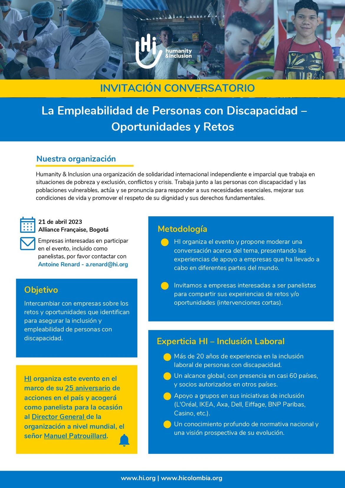 Dans le cadre du 25ème anniversaire de leurs actions en Colombie, HI organise ce séminaire sur l'employabilité des personnes handicapées.
