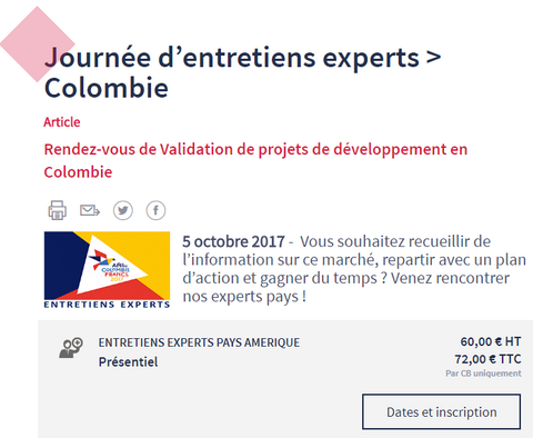 Economie dynamique avec 15 années consécutives de croissance qui ont permis de doubler le PIB (aujourd'hui équivalent au PIB de l'Afrique du Sud). 4ème économie d'Amérique Latine. Marché de près de 50 millions d'habitants, une classe moyenne qui consomme. ALE avec l'UE. Opportunités dans le tourisme, l'agriculture (modernisation des infrastructures de transport) Main d'œuvre formée et qualifiée. RDV le jeudi 5 octubre à la CCI Paris-Ile-de-France avec Bénédicte ONILLON, Responsable Commerciale de la CCI France Colombia.