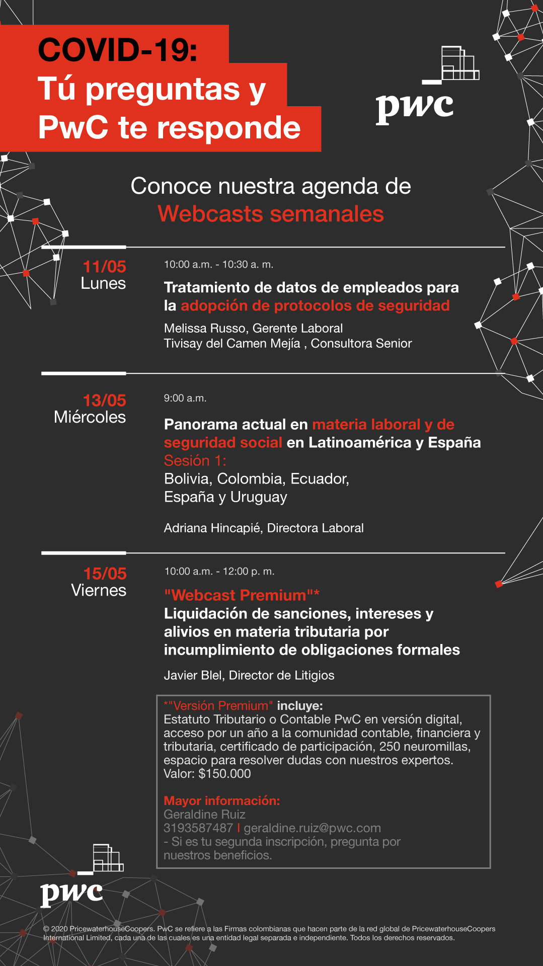 Webinar • COVID-19 Programme des webinaires PwC de la semaine Le 12/05/2020 N'hésitez pas à poser vos questions et Pwc vous répondraInscriptions