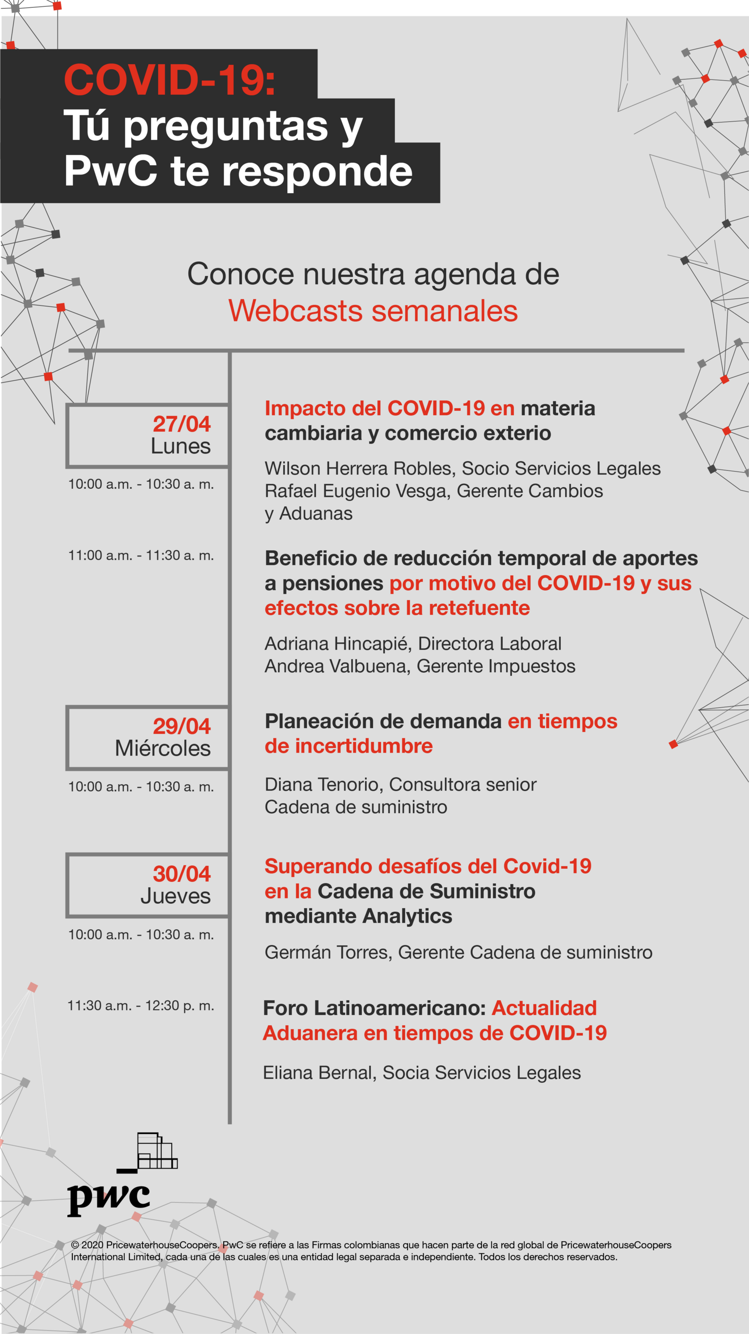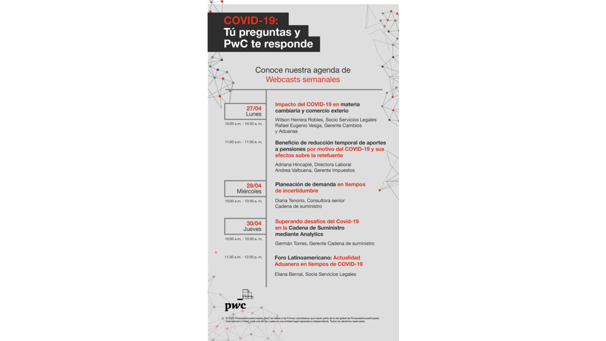 Webinar • COVID-19 • Actus des entreprises Programme des webinaires PwC de la semaine Le 27/04/2020 Lien pour s'inscrire : https://bit.ly/2Vgm6RB