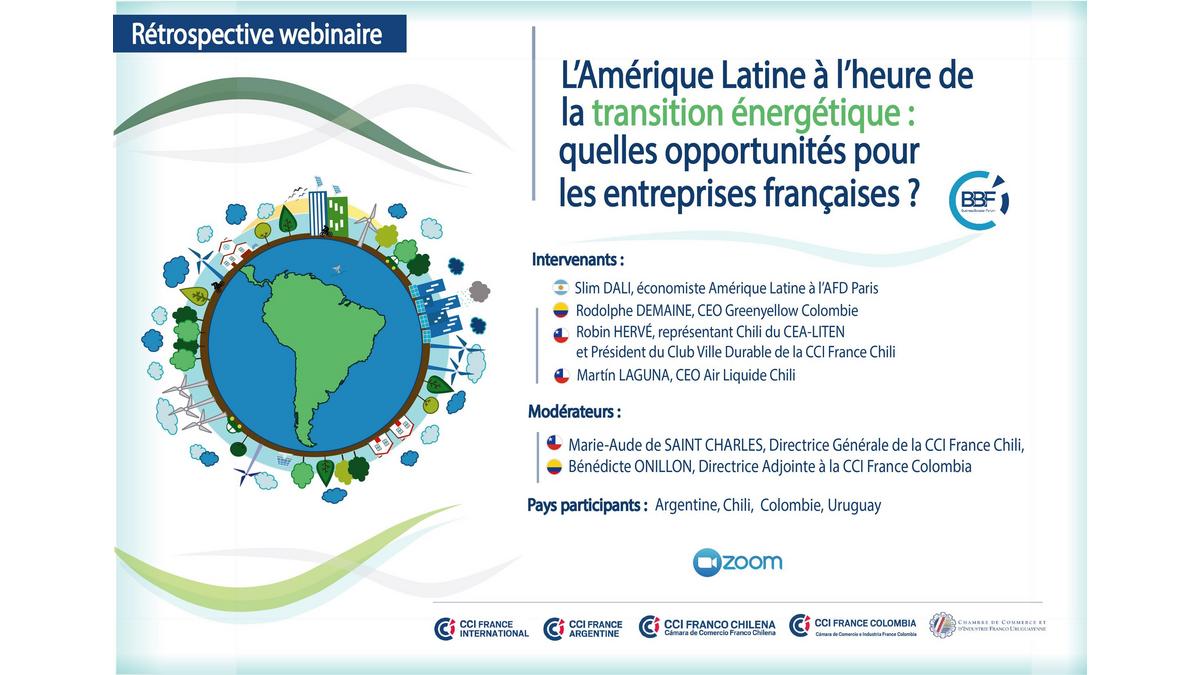Retrouvez les moments forts du webinaire sur "l’Amérique Latine à l’heure de la transition énergétique", et découvrez les opportunités de marché pour les entreprises françaises .