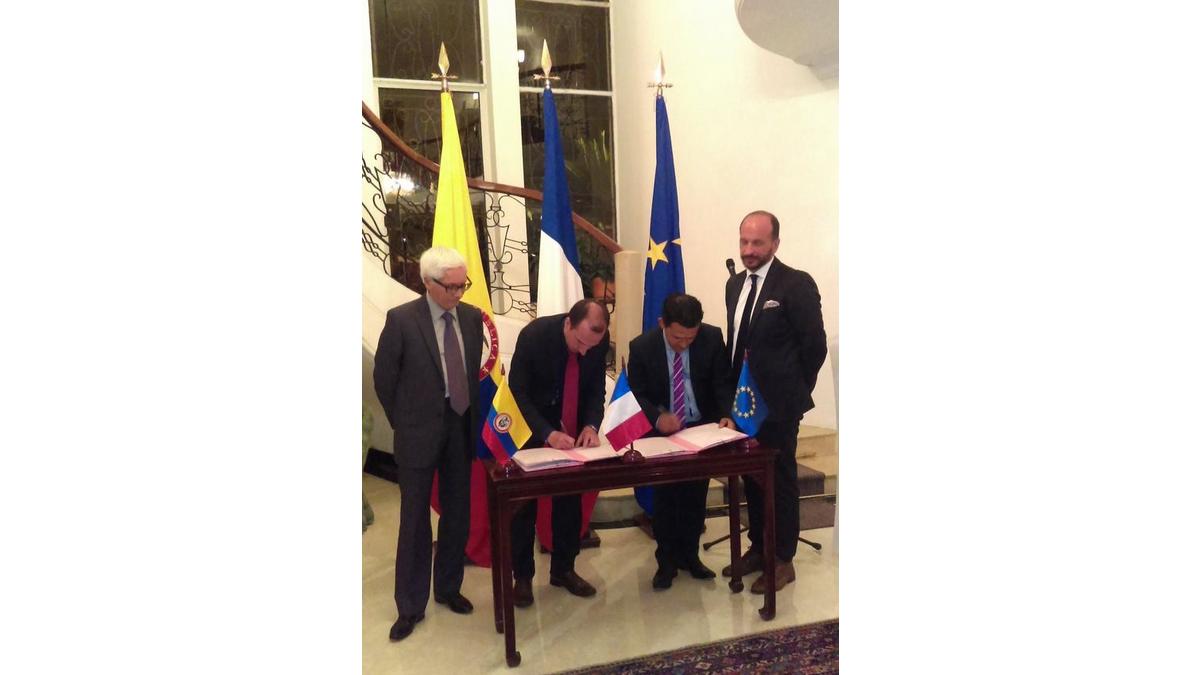 Le 16 mars dernier, à la Résidence de France, en présence de M. Jean-Marc LAFORÊT, le bureau Business France de l´Ambassade de France en Colombie, représenté par Olivier PRADET, son Directeur, et la Chambre de Commerce et d´industrie France-Colombia, représentée par Victor Brun, son Directeur, ont signé un nouvel accord de partenariat dans le cadre des activités d´accompagnement des entreprises françaises sur le marché colombien.