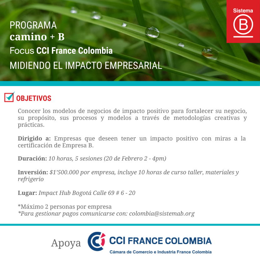 La CCIFC a prévu de lancer de nouveaux ateliers pour les entreprises intéressées par cette iniciative, pour s’inscrire au programme Camino + B, contactez-nous par mail : ccifc@france-colombia.com