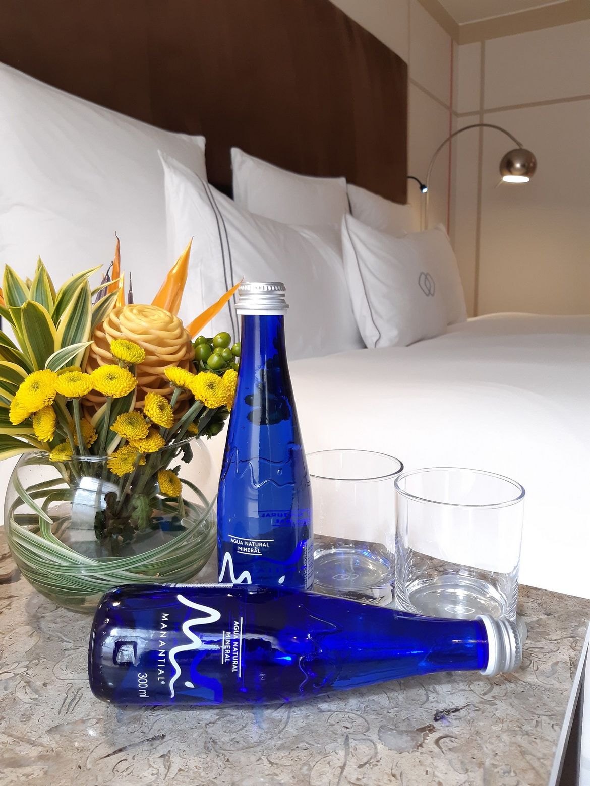 • Les bouteilles en plastiques ont toutes été remplacées par des bouteilles en verre. De plus, le fournisseur s’engage à recycler les récipients. Les restes d’eau sont réutilisés afin d’arroser les fleurs et plantes de l’hôtel. Des distributeurs ont été placés afin d’éviter la prolifération de bouteilles en plastique au sein de l’établissement.