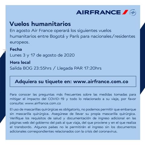 Heure locale : Départ BOG 23:55 hrs / Arrivée PAR 17:20 hrs