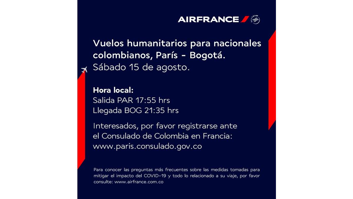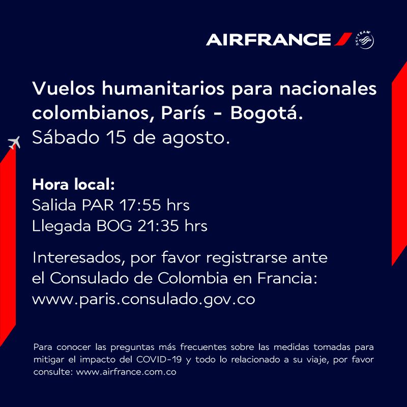 Paris - Bogota, samedi 15 août. Réservé aux ressortissants colombiens.