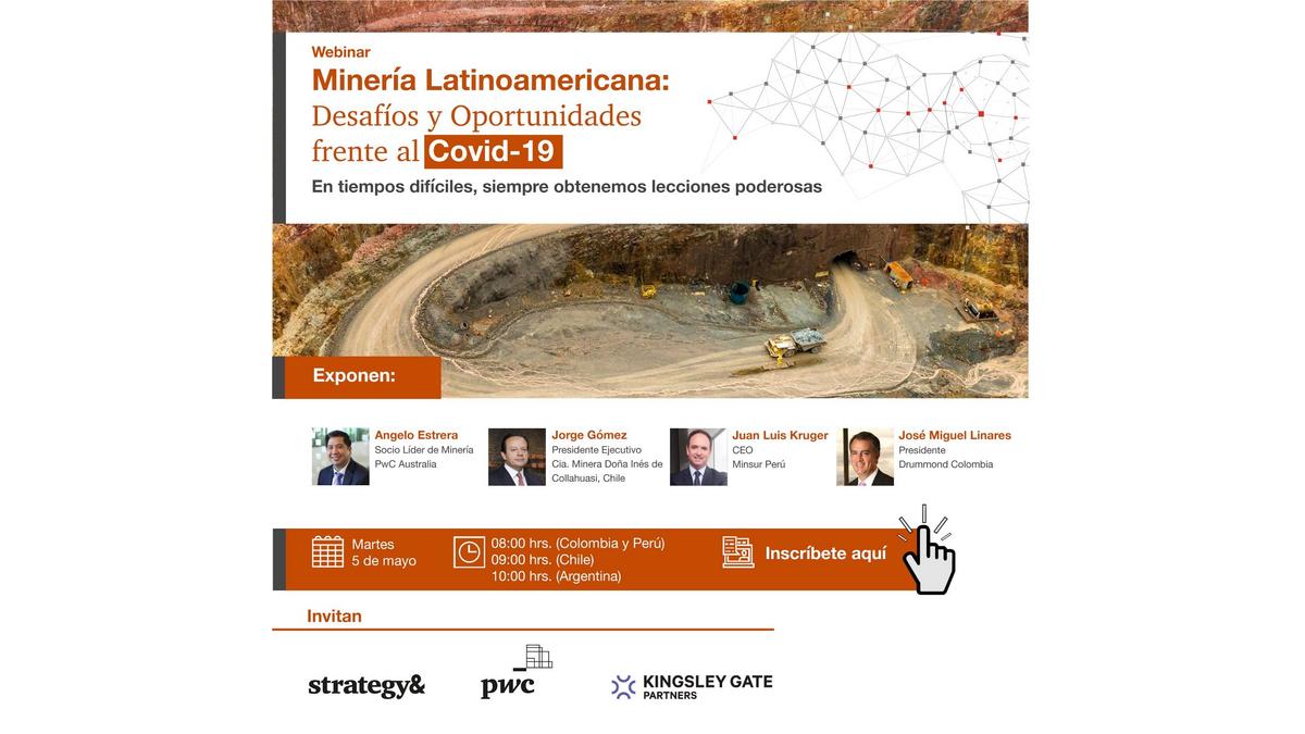 Webinar • COVID-19 Webinaire: L'exploitation minière en Amérique latine: Défis et opportunités face au Covid-19 Le 04/05/2020 S'inscrire