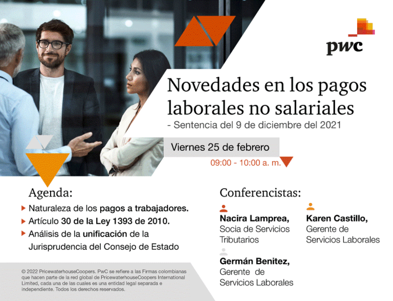 PwC Colombie invite les affiliés de la CCI France Colombia à se connecter à son événement : "Nouveautés dans les paiements des travailleurs non…