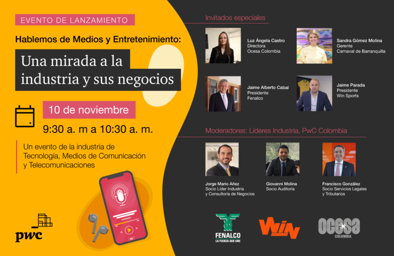 PwC Colombia vous invite à vous connecter à la conférence " Parlons des médias et du divertissement : un regard sur l'industrie et ses activités "