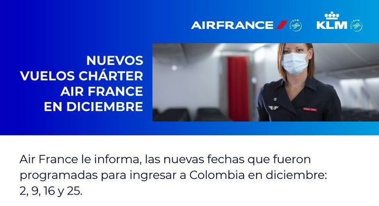 Air France informe que les vols charters prévus pour les dimanches de novembre, Bogota - Paris, ont été annulés. La compagnie fait tout son…