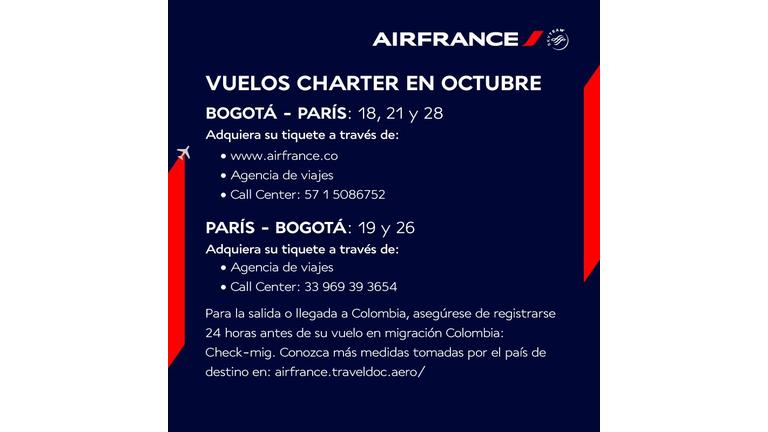 Air France a obtenu l'autorisation des autorités colombiennes pour effectuer certains vols charters au cours du mois d'octobre. Vols Bogotá -…