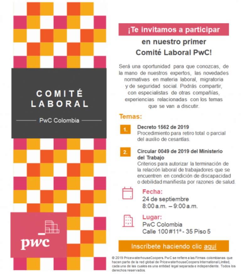 Cet évènement se déroulera à Bogotá dans les bureaux de PwC Colombia, le 24 Septembre 2019, de 8 h00 à 9 h00 Heure d’entrée : 7 h30 Adresse :…