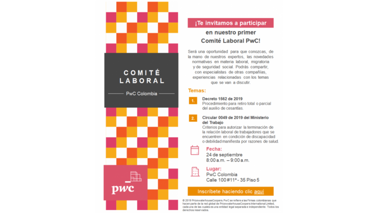 Cet évènement se déroulera à Bogotá dans les bureaux de PwC Colombia, le 24 Septembre 2019, de 8 h00 à 9 h00 Heure d’entrée : 7 h30 Adresse :…