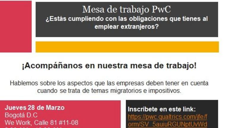 Plus d'information: Sebastian Giraldo Téléphone : 6340555 Ext. 10510 Email: sebastian.giraldo@co.pwc.com
