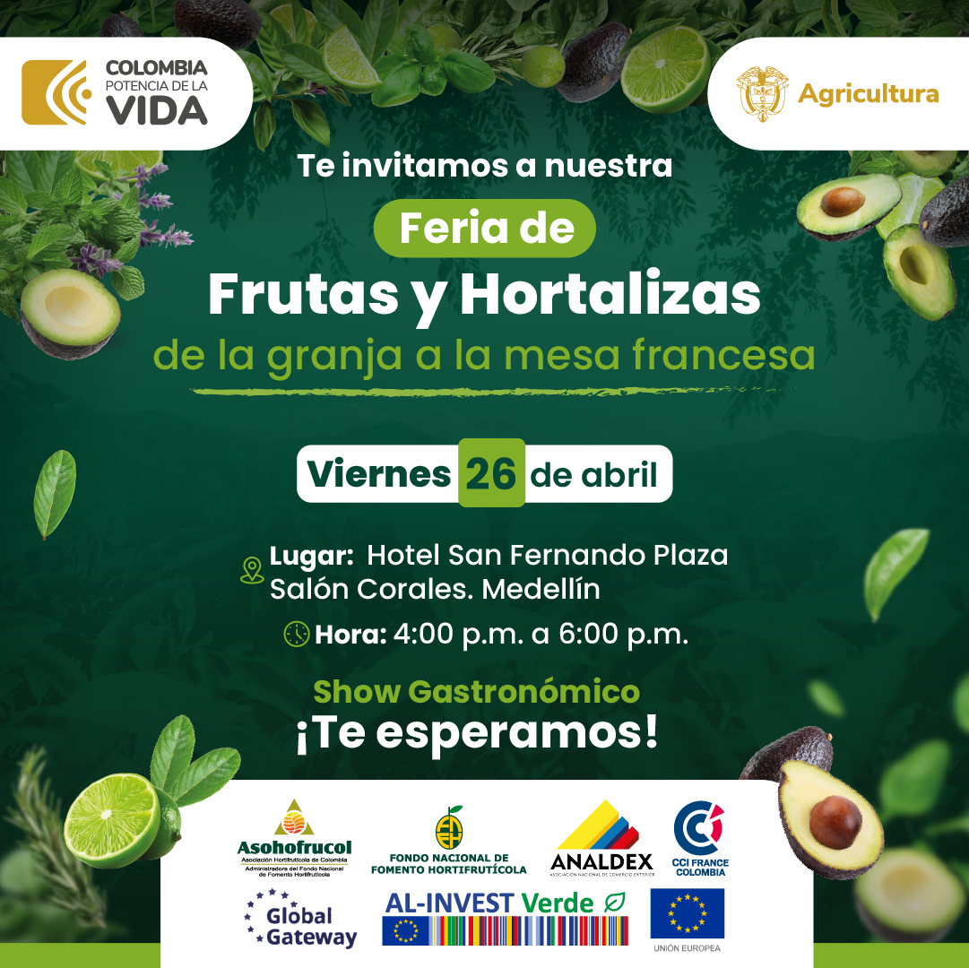El evento tendrá lugar el próximo 26 de abril en el Hotel San Fernando Plaza Medellín, de 4:00 p.m. a 6:00 p.m. Este evento se realiza en alianza con la Cámara de Comercio e industria Francia Colombia y será un espacio único donde podrán conocer de cerca a los productores que han participado en el proyecto de normas de calidad.