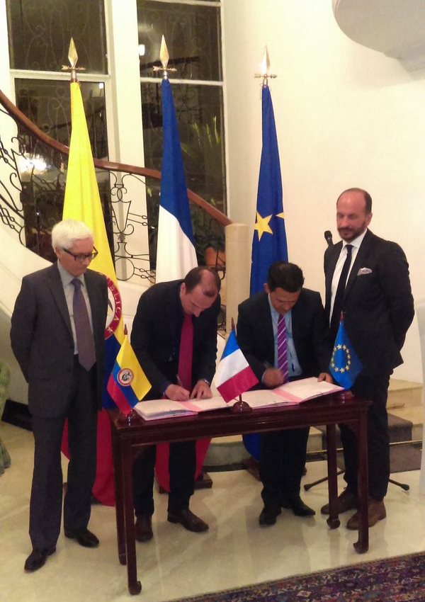 Le 16 mars dernier, à la Résidence de France, en présence de M. Jean-Marc LAFORÊT, le bureau Business France de l´Ambassade de France en Colombie, représenté par Olivier PRADET, son Directeur, et la Chambre de Commerce et d´industrie France-Colombia, représentée par Victor Brun, son Directeur, ont signé un nouvel accord de partenariat dans le cadre des activités d´accompagnement des entreprises françaises sur le marché colombien.