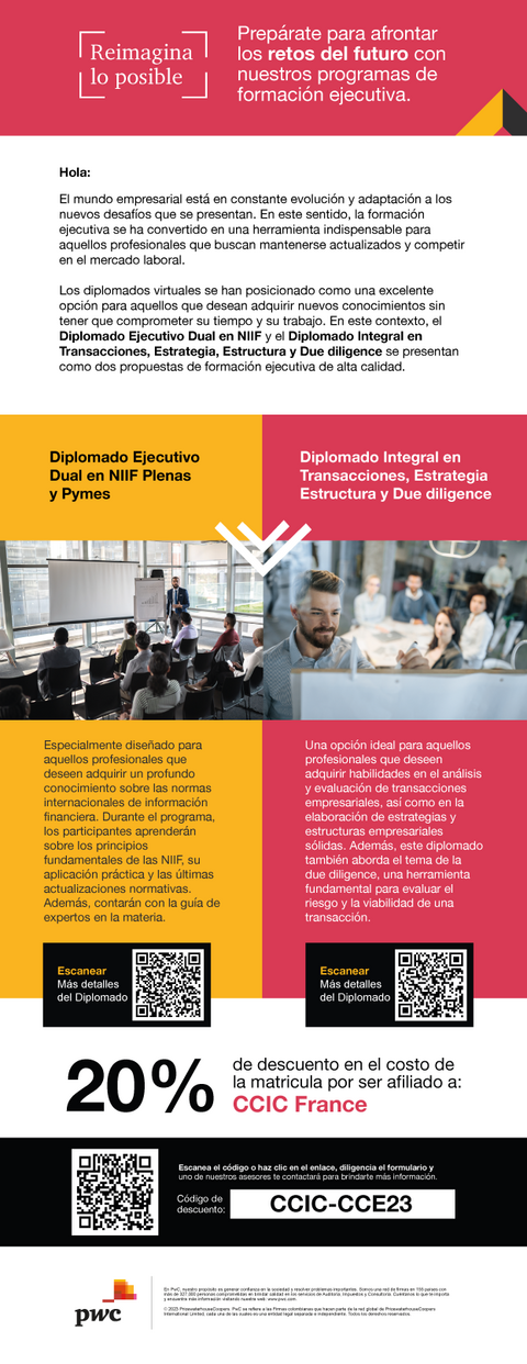 🌟 ¡Y como miembro afiliado de la CCI France Colombia, disfruta de un exclusivo descuento del 20%! 🌟