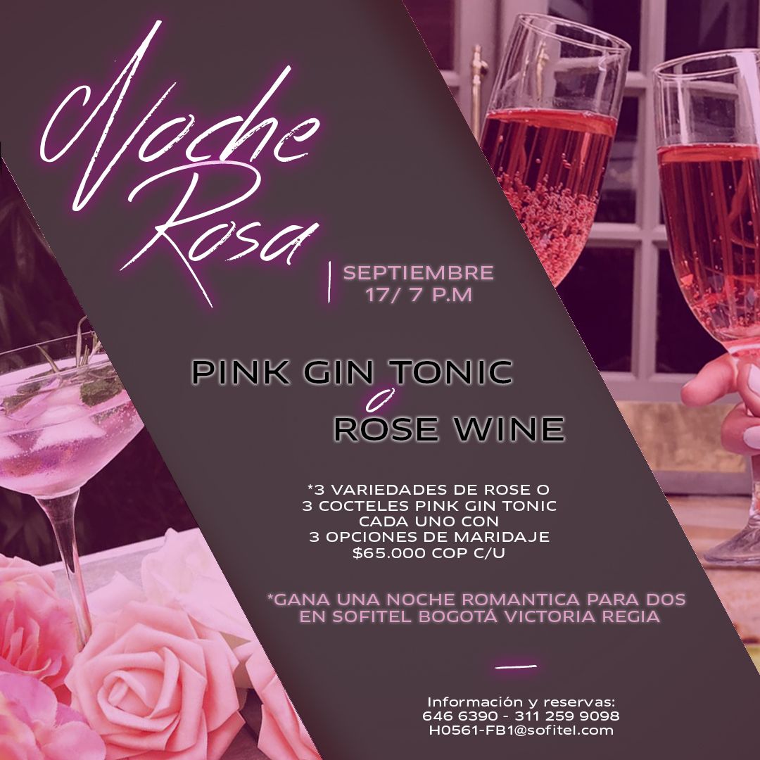 Disfruta de un "Pink Gin Tonic" o un "Rose Wine" cada uno con un surtido especial para terminar la noche al mejor estilo Sofitel Bogotá y entra en el sorteo de una estancia romántica para dos.