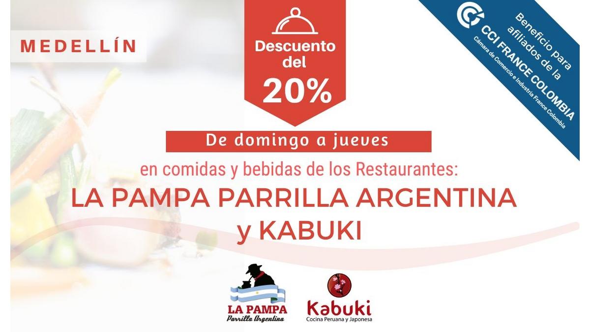 Descuentos en los restaurantes Kabuki Cocina Nikkei y La Pampa Parrilla Argentina, en Medellín