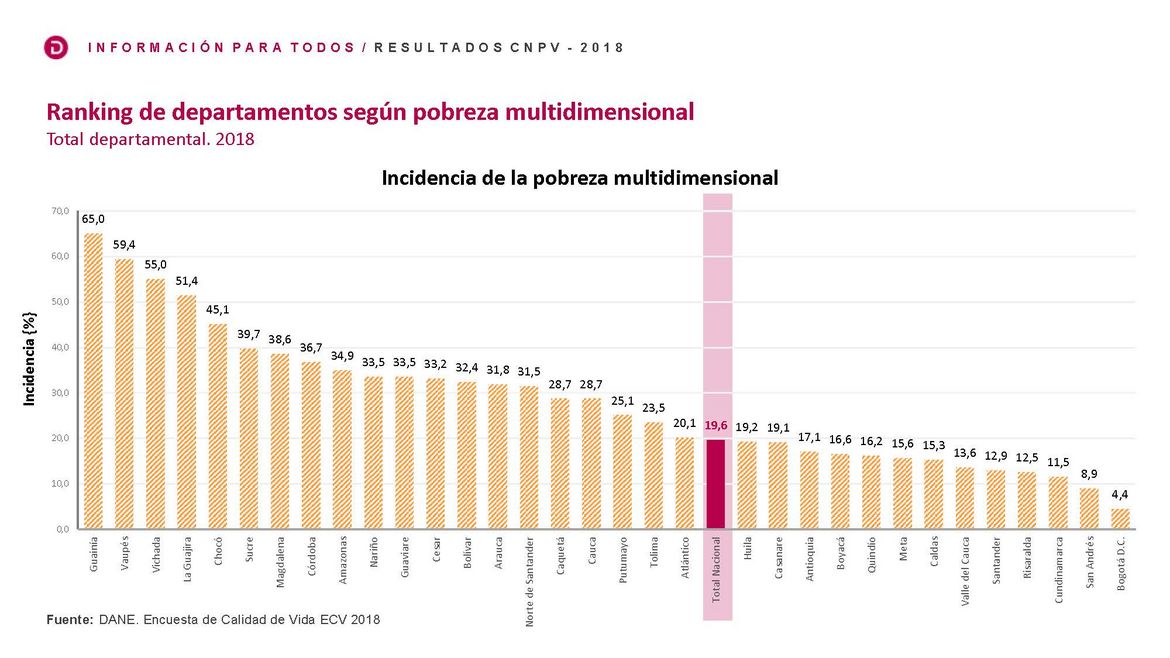 Los anteriores 10 departamentos están entre los 13 departamentos menos pobres objetivamente, medidos a través de la pobreza multidimensional, esta caracterización con ese nivel de satisfacción no se tenían en el país.