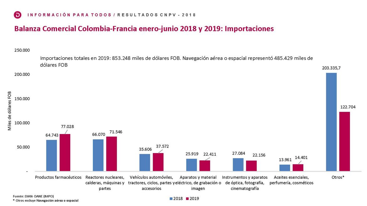 Las importaciones de Colombia provenientes de Francia han ocupado en su mayoría nichos importantes en productos farmacéuticos, motores, canteras industriales, vehículos, tractores, partes y aparatos eléctricos, lo cual tiene una gran relevancia dentro de la canasta familiar. En lo que tiene que ver con importaciones de productos farmacéuticos, en reactores nucleares y en perfumería y cosméticos, tenemos una dinámica. A pesar de que las exportaciones de Colombia están cayendo. Estos segmentos farmacéuticos canteras, cosméticos y aceites esenciales tienen una demanda importante en materia de las importaciones.