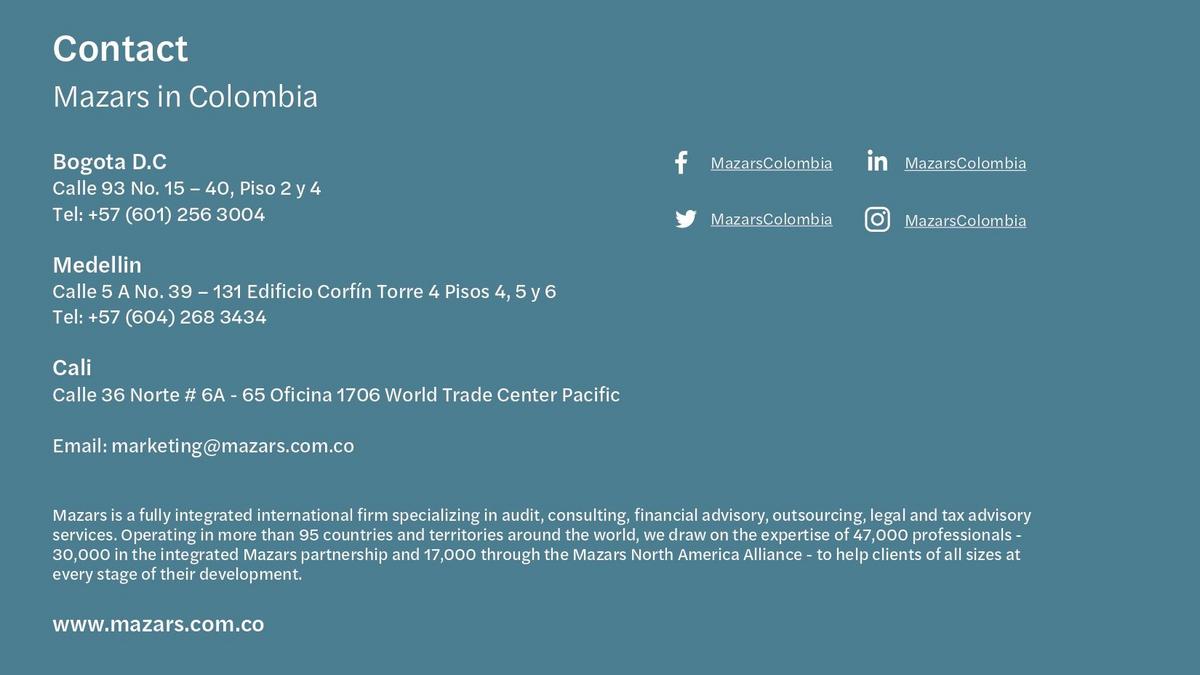 Mazars te comparte estos reportes para que tengas todas las herramientas para invertir en Colombia.