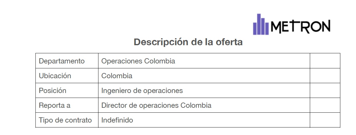 Metron busca Ingeniero de operaciones